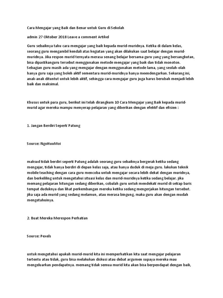 Menjadi guru yang baik harus tahu cara mengajar yang asyik dan menyenangkan. Pasalnya dalam menyampaikan materi pelajaran, anda membutuhkan . Sebaliknya semakin buruk cara mengajarnya maka akan . Anda bisa melakukan evaluasi dan perbaikan cara mengajar yang lebih baik. Mumpung perkuliahan masuk sore saya ingin memberikan tips tentang tata cara mengajar yang baik bagi guru profesional.
